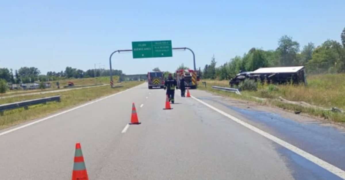 Allí por motivos que desconocemos un camión terminó volcando, afortunadamente solo se registraron daños materiales.