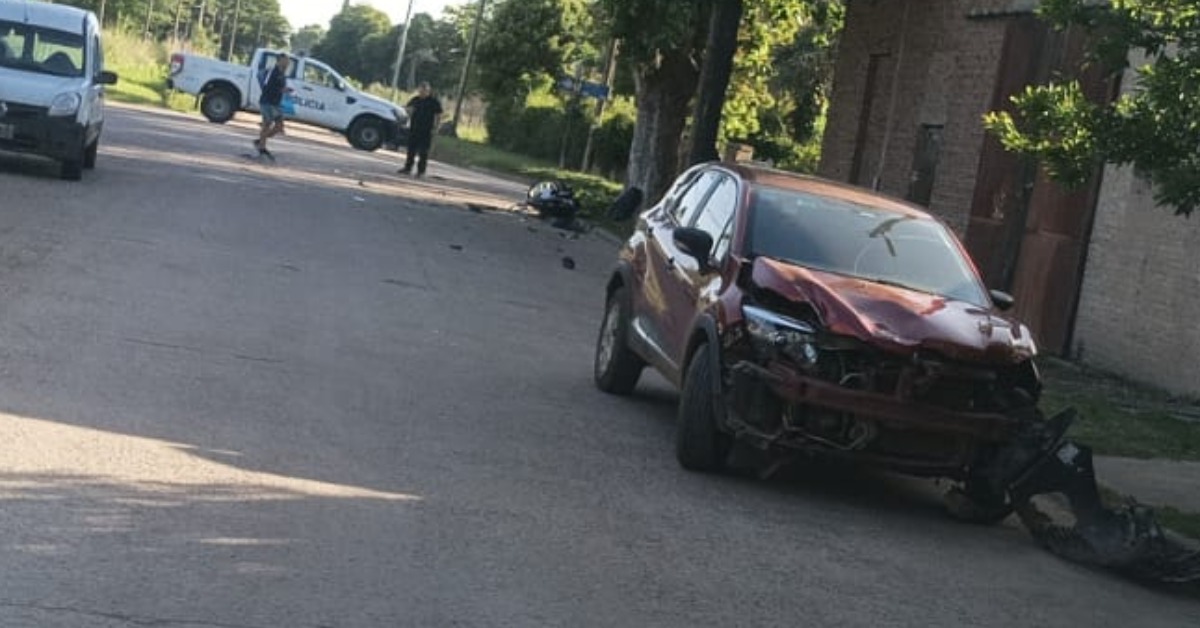 Allí un auto y una moto 110 fueron los protagonistas, a raíz de ello el conductor de menor porte fue trasladado al Hospital Municipal consciente pero con una posible fractura en una de sus piernas.