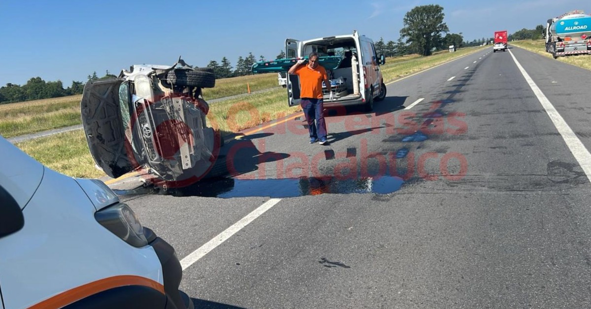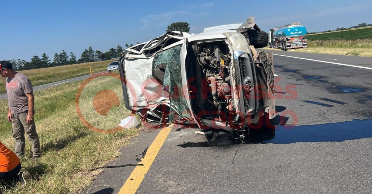 Allí una camioneta Toyota Hiluk se despisto y posteriormente sufrió un vuelco, a raíz de ello el conductor y uno de los 3 acompañantes fueron trasladados al Hospital Interzonal de Agudos de la ciudad de Junín con lesiones de distintas consideración.