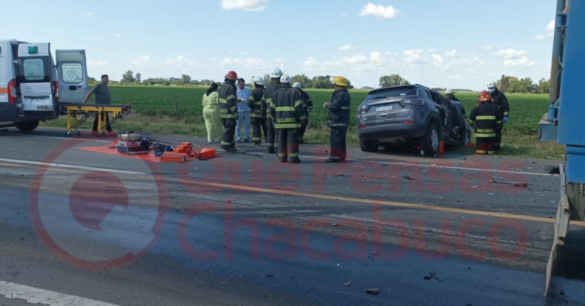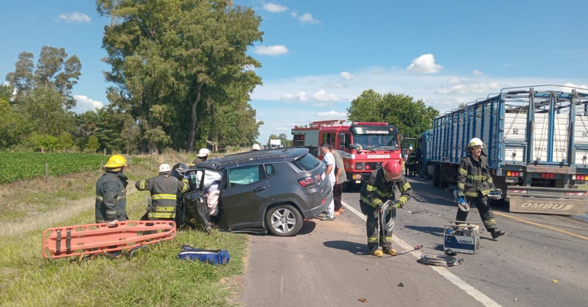 Un vehículo Jeep Compass impactó de esa forma contra un camión Scania con acoplado marca Ombú cargado con ganado - La colisión fue de las partes frontales del costado izquierdo de ambos, tal la declaración que el Jefe de Bomberos a cargo del operativo, Joaquín Vera.